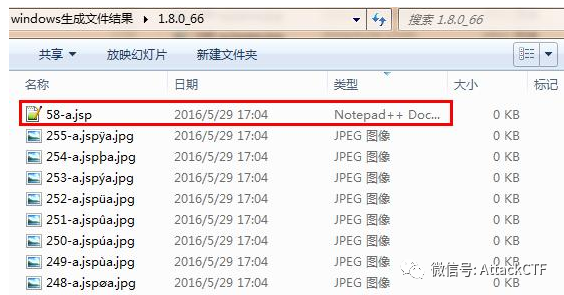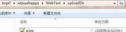 完成文件上传后,查看保存上传文件的目录,可以看到文件上传成功,生成的文件为“a.jsp”。