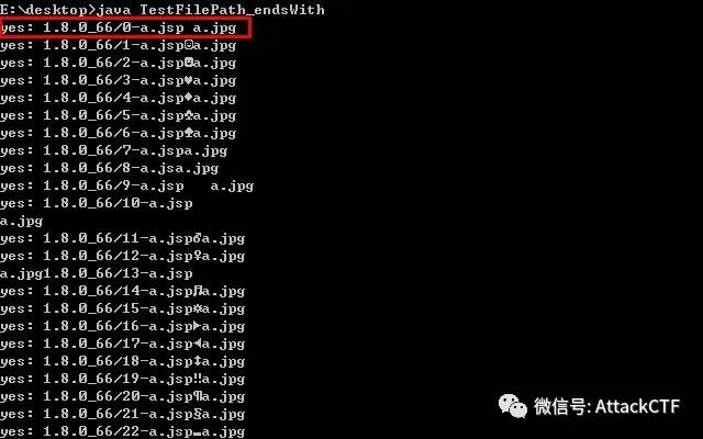 当文件名为“a.jsp[特定字符]a.jpg”形式时,无论[特定字符]是否为0x00,使用String对象的endsWith方法对文件名进行检测,均认为是以“.jpg”结尾。