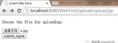 打开upload.jsp,选择文件“a.jpg”进行上传。