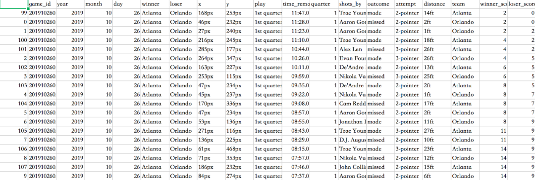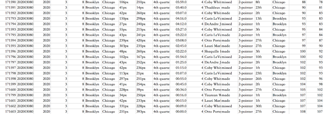 果然是2019-2020年NBA常规赛的球员投篮数据。