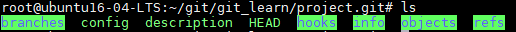 thus there are some files and directories in the directory '~/git/git_learn/project.git/', just like the following picture
