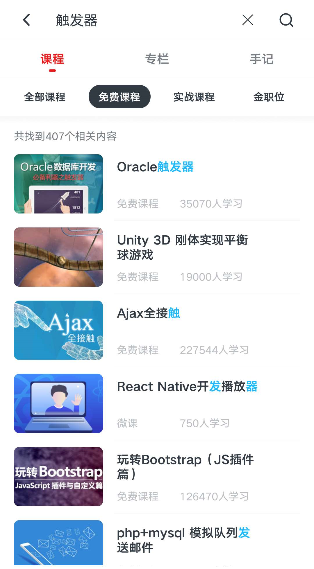 示例一:“慕X网”输入“触发器”的搜索截图。