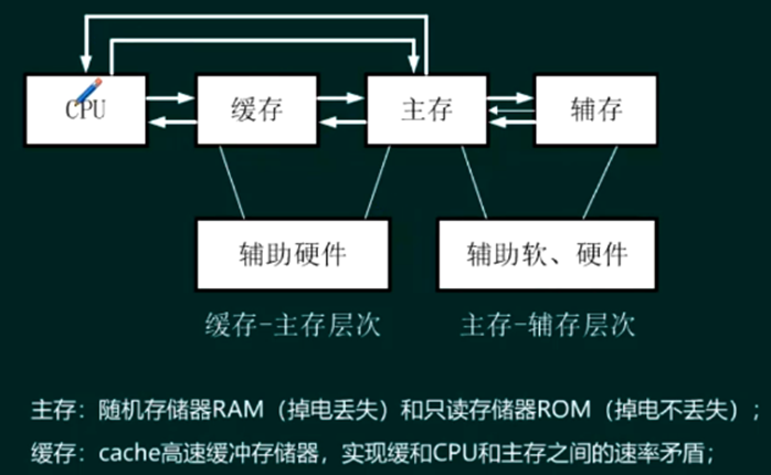 容量:CPU<缓存<主存<辅存 主存的容量大部分是RAM的
