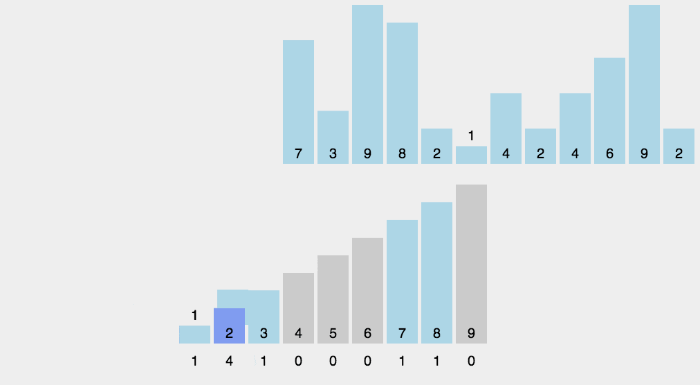 计数排序的核心在于将输入的数据值转化为键存储在额外开辟的数组空间中。作为一种线性时间复杂度的排序,计数排序要求输入的数据必须是有确定范围的整数。