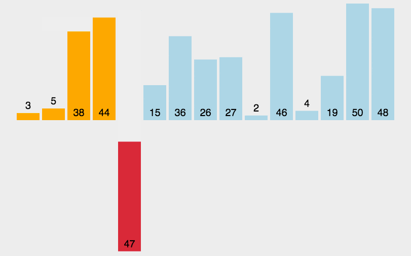 递归的最底部情形,是数列的大小是零或一,也就是永远都已经被排序好了。虽然一直递归下去,但是这个算法总会退出,因为在每次的迭代(iteration)中,它至少会把一个元素摆到它最后的位置去。