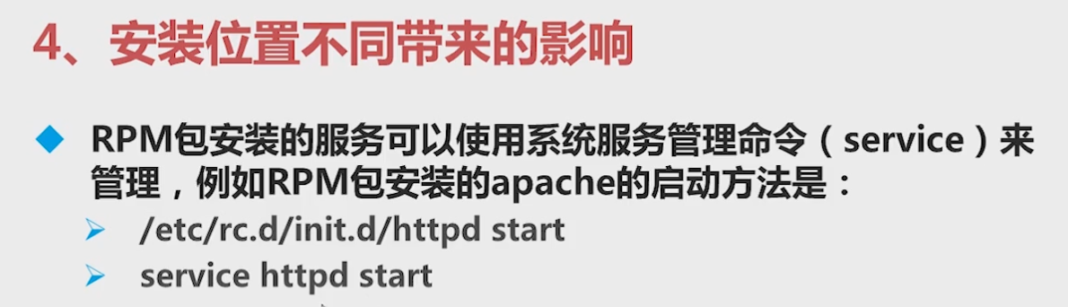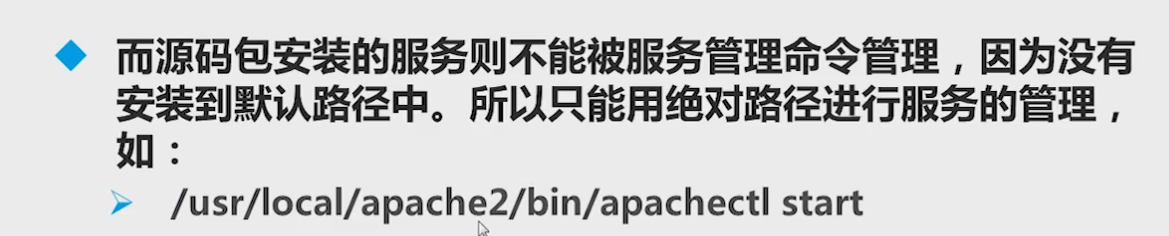 而源码包只能使用绝对路径来启动,例如httpd apache软件