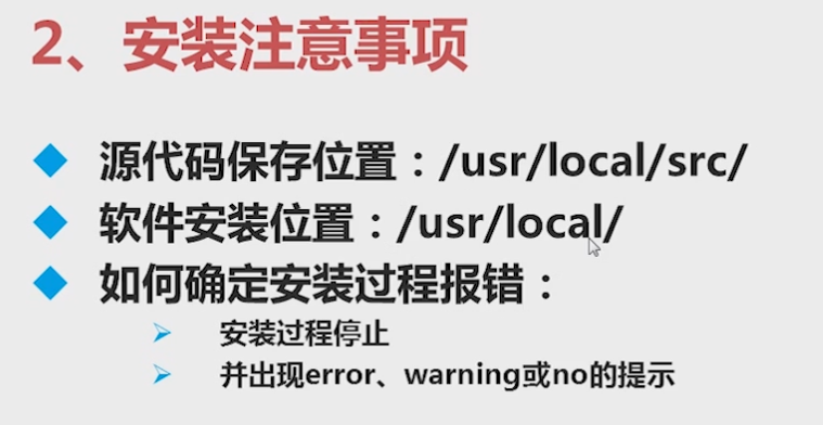 源码包最好指定安装目录,一般是/usr/local目录下,该目录相当于windows下的project files目录