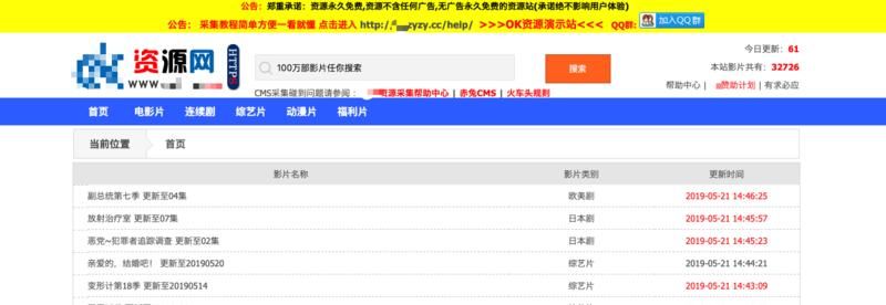 随便点进去一个会发现,所有的资源站长的也差不多,都是以最简单的列表形式展示出来,有个搜索的功能,有个采集教程,有的还有官方 QQ 群。