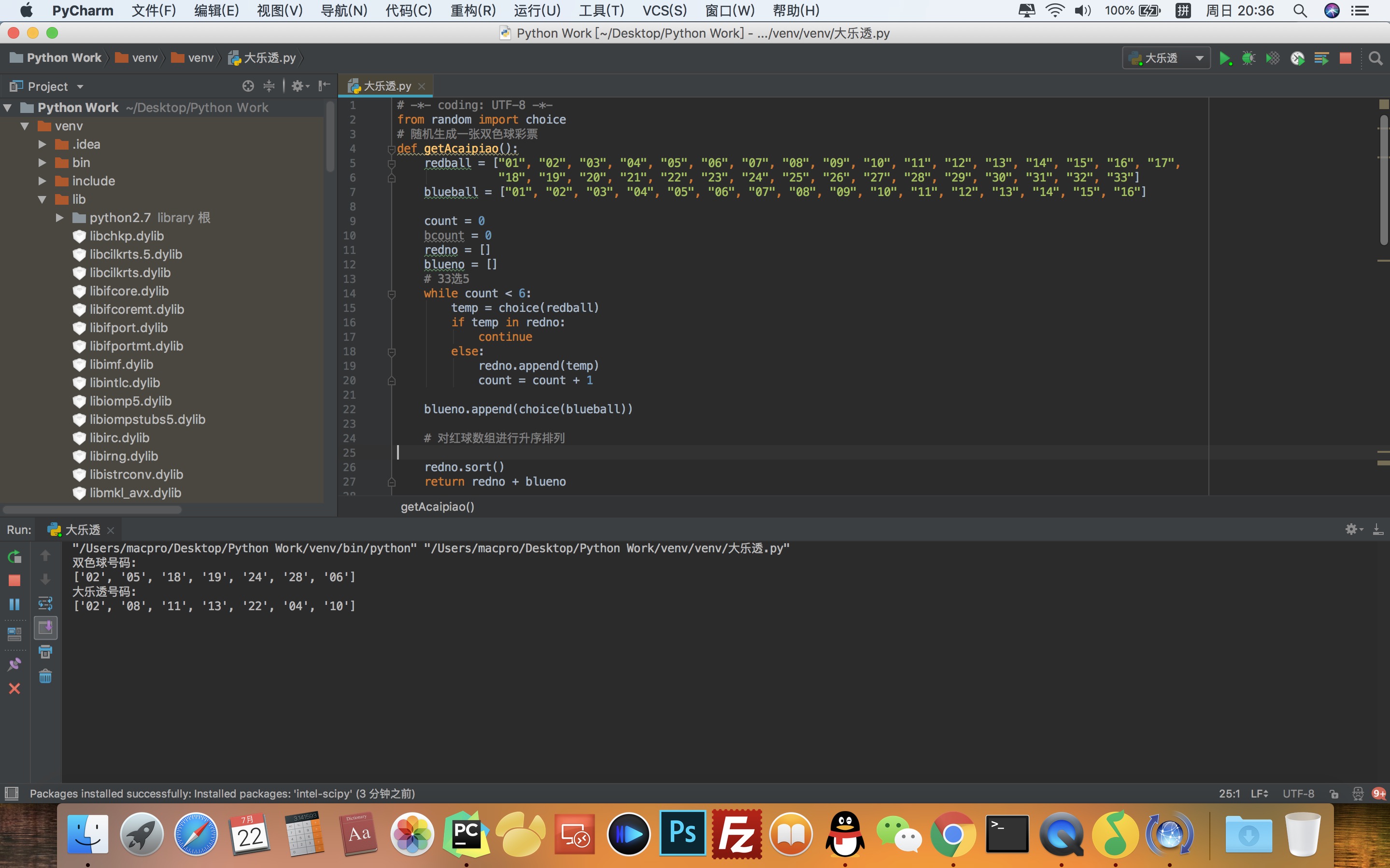 每天练习一段python代码,健康生活一辈子。晚上下班没事,打开电脑继续编写python代码!今天分享的一个是大家熟悉的双色球彩票的游戏,根据这个进行写的一个python算法,代码精简,肯定有bug,哪里不足的,可以交流学习!