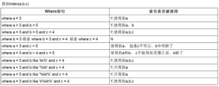 3、索引最左有限原则;
