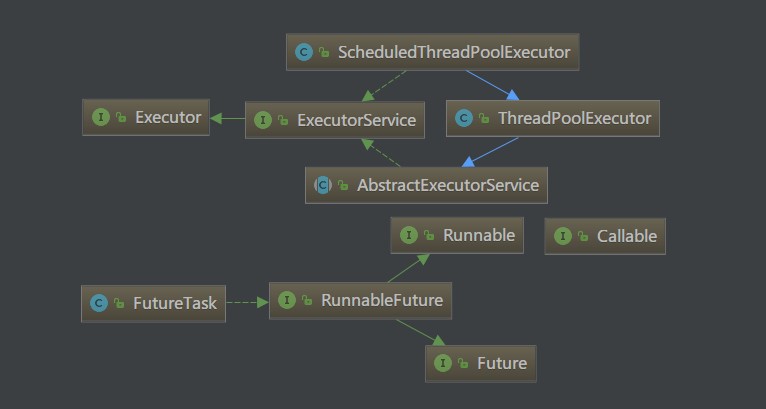 任务的执行:核心接口Executor和ExecutorService接口。在Executor框架中有两个核心类实现了ExecutorService接口,ThreadPoolExecutor和ScheduledThreadPoolExecutor。