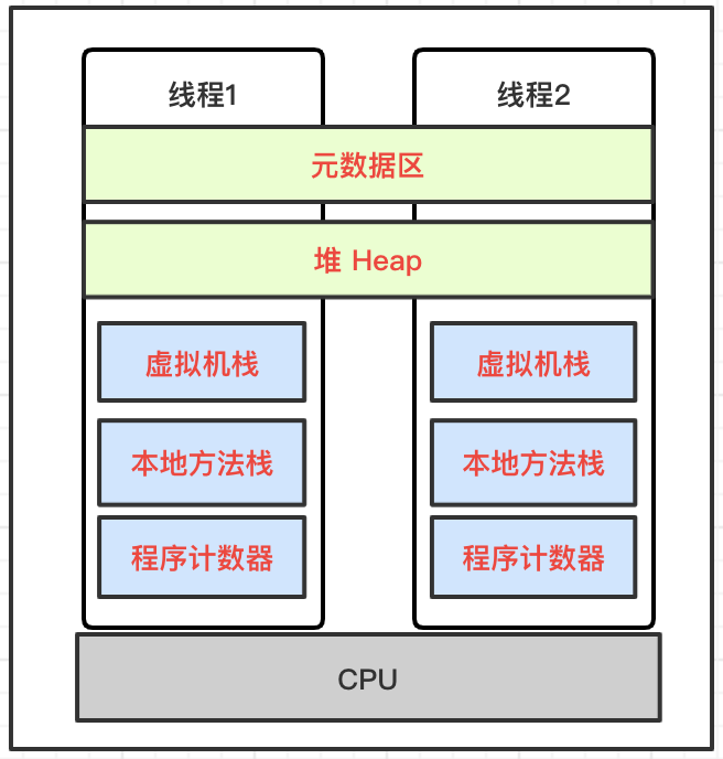 在虚拟机启动运行时,会创建多个线程,数据区中有的模块是线程共享的,有的是线程私有的: