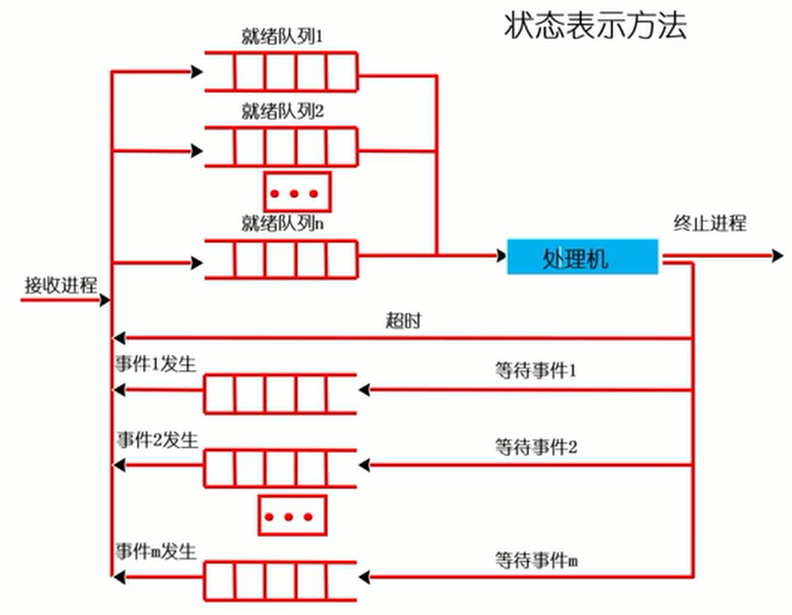 ■不同的状态分别用不同的队列来表示就绪队列、各种类型的阻塞队列);