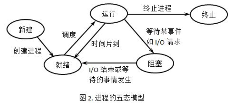 五态模型在三态模型的基础上增加了新建态(new)和终止态(exit)。