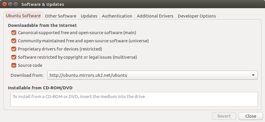 由于ROS属于社区支持,还有很多其他的库并不是官方支持的,所以需要修改ubuntu的仓库属性,让其允许获得属性为“main”、“restricted”、“universe”和“multiverse”的源,可以根据这个进行配置。