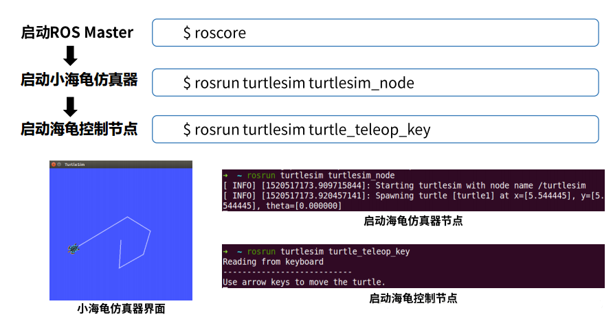 <span style="color:red">至此,ROS的安装正式宣告结束,下面运行一个鼠标控制海龟移动的demo来验证ROS是否成功安装好了。</span>