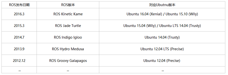 Ubuntu 和 ROS 都存在不同的版本,其对应关系如下: