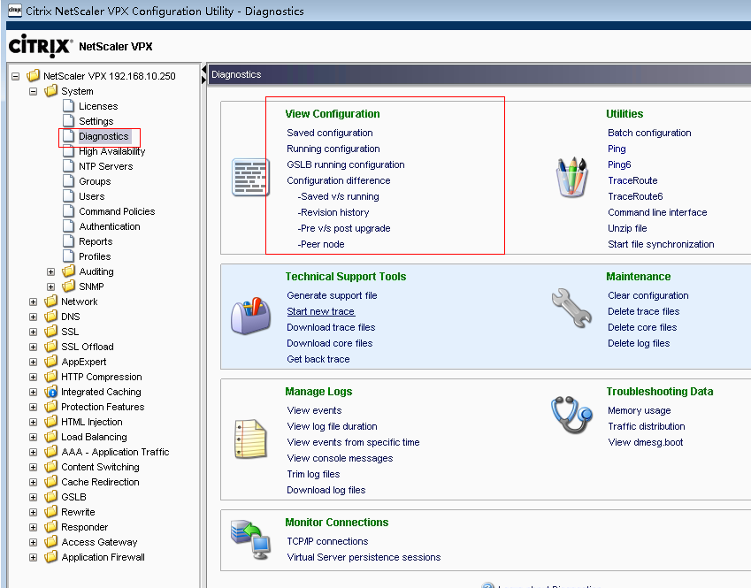 set ns config -IPAddress 192.168.10.250 -netmask 255.255.255.0