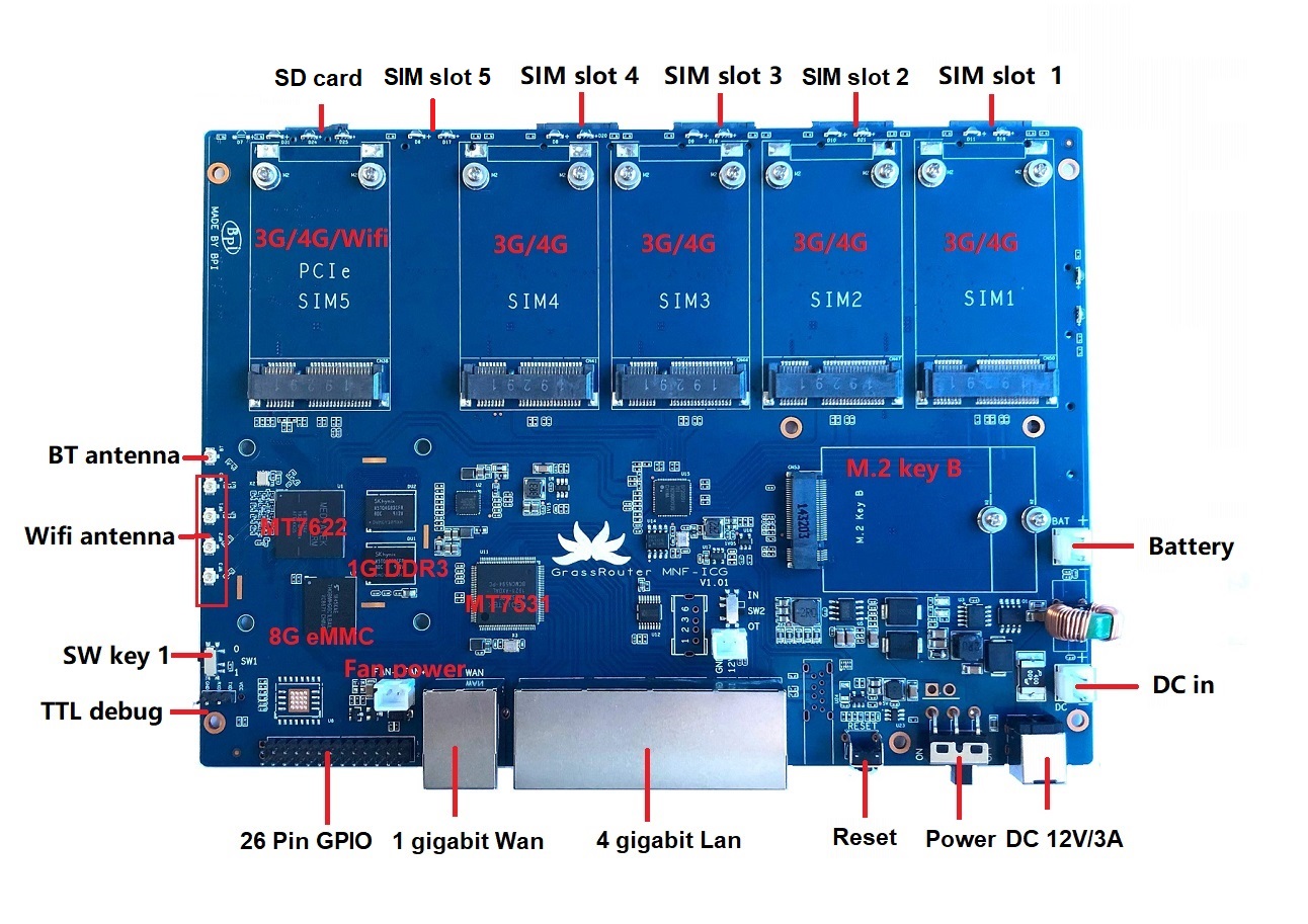 硬件方案,基于banana Pi BPI-R64 MTK7622方案设计,并兼容5G应用:
