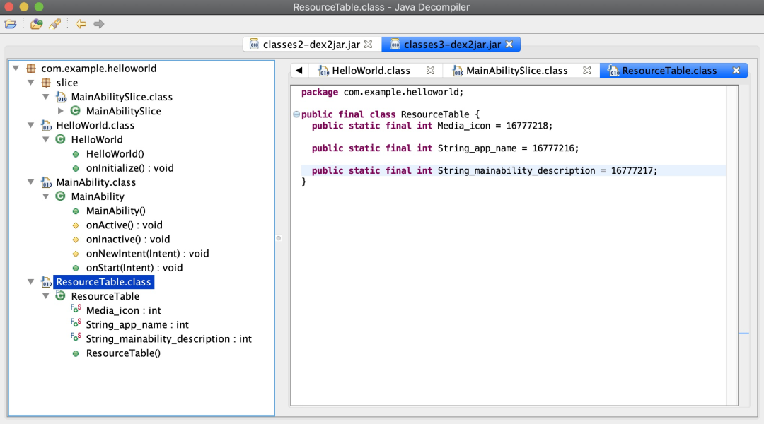 至此感觉.hap文件像是对apk的一个包装,最终的逻辑看起来好像还是android那套,或者说android开发人员上手会非常快,可能也是为将来兼容android系统做准备。