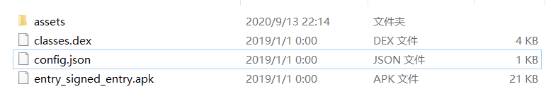 修改它的后缀名为.zip,解压后可以看到里面有熟悉的assets,dex,apk文件等,把这个apk文件安装后发现并不能使用。