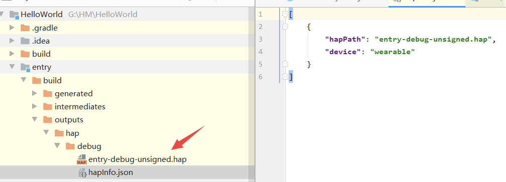 编译后得到的是一个xxx.hap文件。