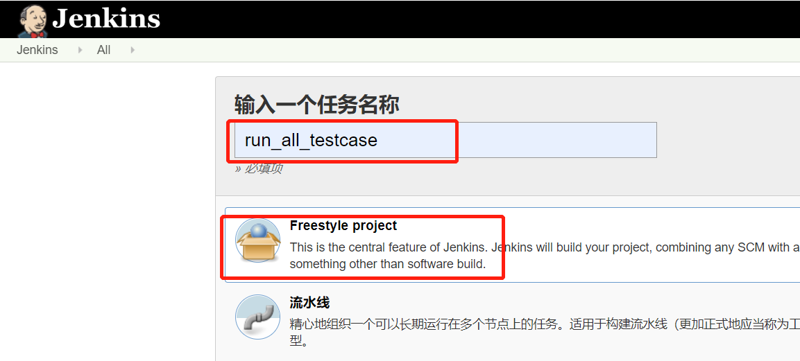 (1)点击新建,输入项目名称--构建一个自由风格的软件项目,点击ok