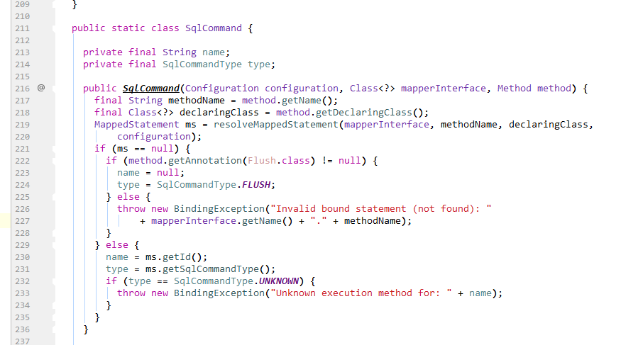 at org.apache.ibatis.binding.MapperMethod$SqlCommand.<init>(MapperMethod.java:227)