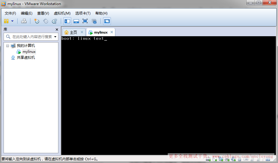 然后输入linux text,进入文本安装模式,文本安装模式是linux的最小安装,只安装操作系统需要的基本组件
