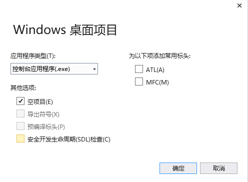 (3)选择“空项目”,取消选择“安全开发生命周期(SDL)检查”