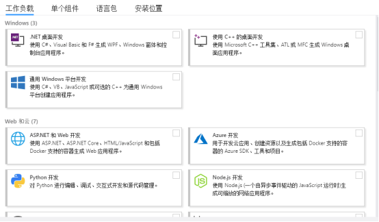 在“工作负载”中选择“通用Windows平台开发与”“使用C++的桌面开发”这两个开发平台,选择“安装位置”为D盘,进行安装。