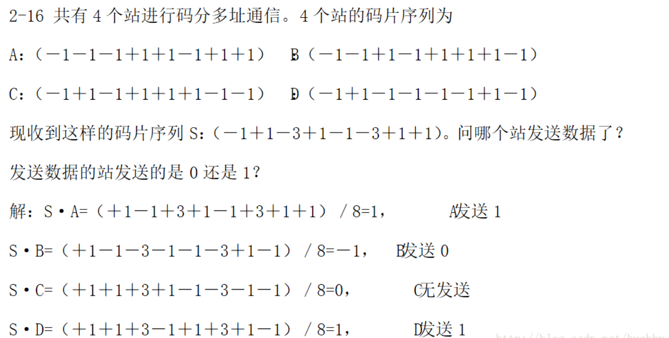 - 码分复用(CDM、CDMA):用一组包含互相正交的码字的码组携带多路信号