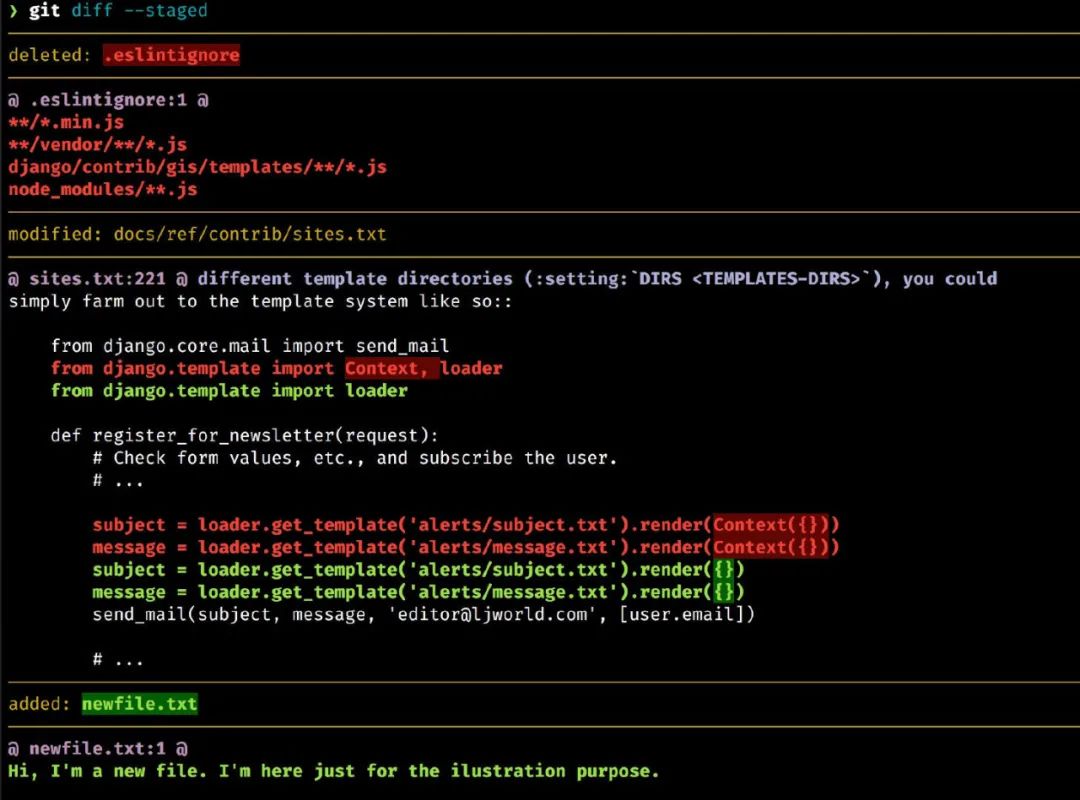 如果你觉得还不够,那么我推荐给你 diff-so-fancy。它是比colordiff更友好的一个差异对比工具。