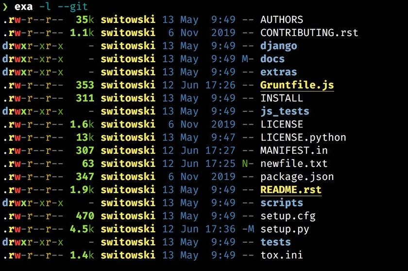 exa是ls命令的一个可替代方案。