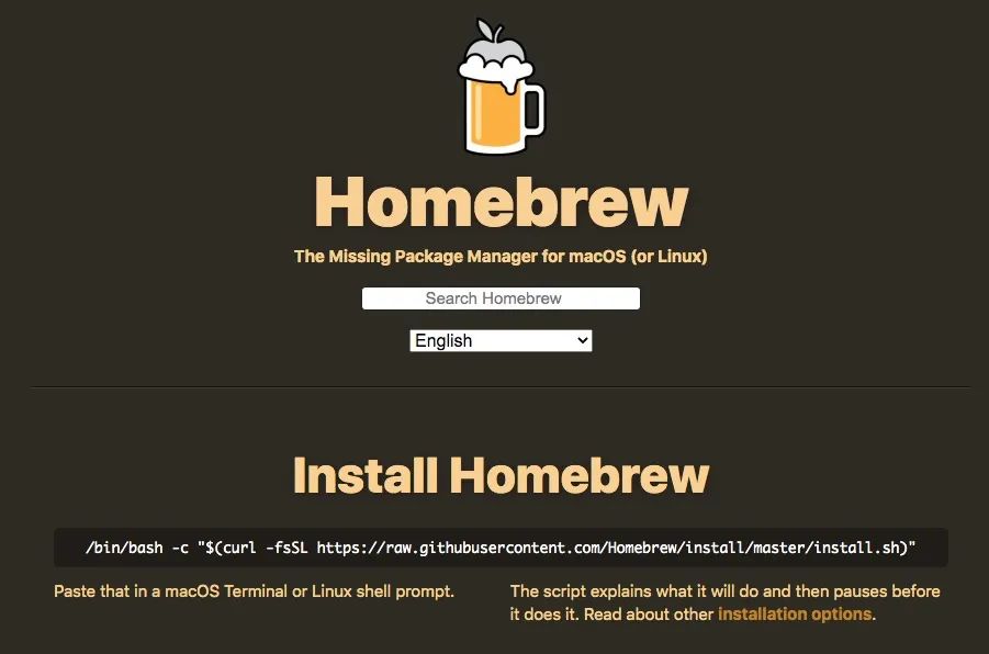 下载地址:https://brew.sh/