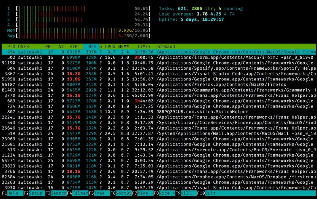 htop工具是top工具的绝佳替代品。