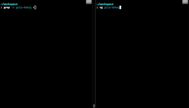 上图为 grep(左)与 rg(右)命令执行时的对比。