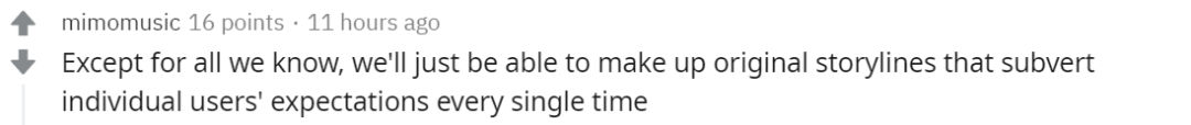 不止如此,还有人表示:「除了已知情节外,我们还可以构建一些颠覆用户预期的原创故事情节。」