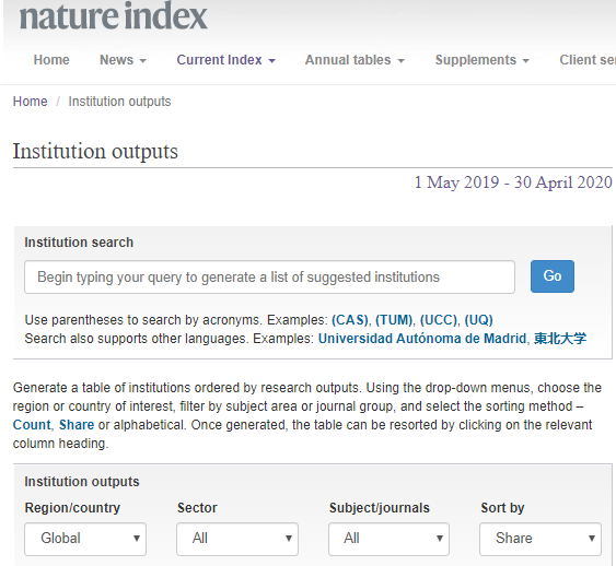 自然指数于2014年11月首次发布,追踪高质量自然科学期刊所发表的科研论文的作者信息。自2018年6月起,纳入指数的期刊数量已由68本增至82本。