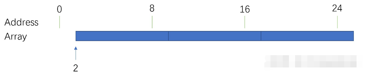 数组的首地址为2,根据原则1数组未对齐。若CPU每次从内存中为8字节整数倍的地址开始读入8字节的数据,则每次从未对齐的数组中读取一个成员都要进行两次读取操作,而从对齐的数组中读取则只需要一次读取操作,数组对齐时读取效率有较大提升