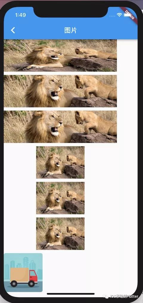 class GCImageTest extends StatefulWidget {_GCImageTestState createState() => _GCImageTestState();}class _GCImageTestState extends State<GCImageTest> {Widget buildImage (url,BoxFit fit){return Container(child: Image.network(url,fit:fit,width: 350,height: 100,),);}Widget build(BuildContext context) {return Column(mainAxisAlignment: MainAxisAlignment.start,crossAxisAlignment: CrossAxisAlignment.start,children: <Widget>[buildImage("https://ss1.bdstatic.com/70cFvXSh_Q1YnxGkpoWK1HF6hhy/it/u=2942065216,1819114681&fm=27&gp=0.jpg", BoxFit.fill),SizedBox(height: 10,),buildImage("https://ss1.bdstatic.com/70cFvXSh_Q1YnxGkpoWK1HF6hhy/it/u=2942065216,1819114681&fm=27&gp=0.jpg", BoxFit.cover),SizedBox(height: 10,),buildImage("https://ss1.bdstatic.com/70cFvXSh_Q1YnxGkpoWK1HF6hhy/it/u=2942065216,1819114681&fm=27&gp=0.jpg", BoxFit.fitWidth),SizedBox(height: 10,),buildImage("https://ss1.bdstatic.com/70cFvXSh_Q1YnxGkpoWK1HF6hhy/it/u=2942065216,1819114681&fm=27&gp=0.jpg", BoxFit.contain),SizedBox(height: 10,),buildImage("https://ss1.bdstatic.com/70cFvXSh_Q1YnxGkpoWK1HF6hhy/it/u=2942065216,1819114681&fm=27&gp=0.jpg", BoxFit.fitHeight),SizedBox(height: 10,),buildImage("https://ss1.bdstatic.com/70cFvXSh_Q1YnxGkpoWK1HF6hhy/it/u=2942065216,1819114681&fm=27&gp=0.jpg", BoxFit.scaleDown),SizedBox(height: 10,),FadeInImage.assetNetwork(image:"",placeholder:"lib/static/express_list_icon@2x.png",)],);}}