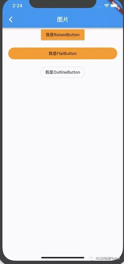 class _GCButtonTestState extends State<GCButtonTest> {@overrideWidget build(BuildContext context) {return Container(width: MediaQuery.of(context).size.width,child: Column(crossAxisAlignment: CrossAxisAlignment.center,mainAxisAlignment: MainAxisAlignment.start,children: <Widget>[RaisedButton(highlightColor: Colors.red,color: Colors.orange,child: Text("我是RaisedButton"),onPressed: () {},),Container(width: MediaQuery.of(context).size.width,height: 80,padding: EdgeInsets.all(20),child: FlatButton(shape: const RoundedRectangleBorder(side: BorderSide.none,borderRadius: BorderRadius.all(Radius.circular(50))),highlightColor: Colors.red,color: Colors.orange,child: Text("我是FlatButton"),onPressed: () {},),),OutlineButton(shape: const RoundedRectangleBorder(side: BorderSide.none,borderRadius: BorderRadius.all(Radius.circular(20))),onPressed: () {},child: Text("我是OutlineButton"),),],),);}}