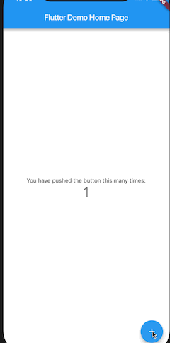 void main() => runApp(MyApp());class MyApp extends StatelessWidget {// This widget is the root of your application.Widget build(BuildContext context) {return MaterialApp(title: 'Flutter Demo',theme: ThemeData(// This is the theme of your application.//// Try running your application with "flutter run". You'll see the// application has a blue toolbar. Then, without quitting the app, try// changing the primarySwatch below to Colors.green and then invoke// "hot reload" (press "r" in the console where you ran "flutter run",// or simply save your changes to "hot reload" in a Flutter IDE).// Notice that the counter didn't reset back to zero; the application// is not restarted.primarySwatch: Colors.blue,),home: MyHomePage(title: 'Flutter Demo Home Page'),);}}class MyHomePage extends StatefulWidget {MyHomePage({Key key, this.title}) : super(key: key);// This widget is the home page of your application. It is stateful, meaning// that it has a State object (defined below) that contains fields that affect// how it looks.// This class is the configuration for the state. It holds the values (in this// case the title) provided by the parent (in this case the App widget) and// used by the build method of the State. Fields in a Widget subclass are// always marked "final".final String title;_MyHomePageState createState() => _MyHomePageState();}class _MyHomePageState extends State<MyHomePage> {int _counter = 0;void _incrementCounter() {setState(() {// This call to setState tells the Flutter framework that something has// changed in this State, which causes it to rerun the build method below// so that the display can reflect the updated values. If we changed// _counter without calling setState(), then the build method would not be// called again, and so nothing would appear to happen._counter++;});}Widget build(BuildContext context) {// This method is rerun every time setState is called, for instance as done// by the _incrementCounter method above.//// The Flutter framework has been optimized to make rerunning build methods// fast, so that you can just rebuild anything that needs updating rather// than having to individually change instances of widgets.return Scaffold(appBar: AppBar(// Here we take the value from the MyHomePage object that was created by// the App.build method, and use it to set our appbar title.title: Text(widget.title),),body: Center(// Center is a layout widget. It takes a single child and positions it// in the middle of the parent.child: Column(// Column is also layout widget. It takes a list of children and// arranges them vertically. By default, it sizes itself to fit its// children horizontally, and tries to be as tall as its parent.//// Invoke "debug painting" (press "p" in the console, choose the// "Toggle Debug Paint" action from the Flutter Inspector in Android// Studio, or the "Toggle Debug Paint" command in Visual Studio Code)// to see the wireframe for each widget.//// Column has various properties to control how it sizes itself and// how it positions its children. Here we use mainAxisAlignment to// center the children vertically; the main axis here is the vertical// axis because Columns are vertical (the cross axis would be// horizontal).mainAxisAlignment: MainAxisAlignment.center,children: <Widget>[Text('You have pushed the button this many times:',),Text('$_counter',style: Theme.of(context).textTheme.display1,),],),),floatingActionButton: FloatingActionButton(onPressed: _incrementCounter,tooltip: 'Increment',child: Icon(Icons.add),), // This trailing comma makes auto-formatting nicer for build methods.);}}