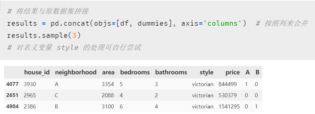 注意虚拟变量设置成功后,需要与原来的数据集拼接,这样才能将其一起放进模型。