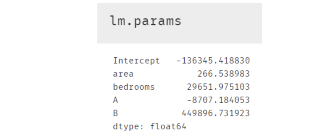 多元线性回归模型的可解释性比较强,将模型参数打印出来即可求出因变量与自变量的关系