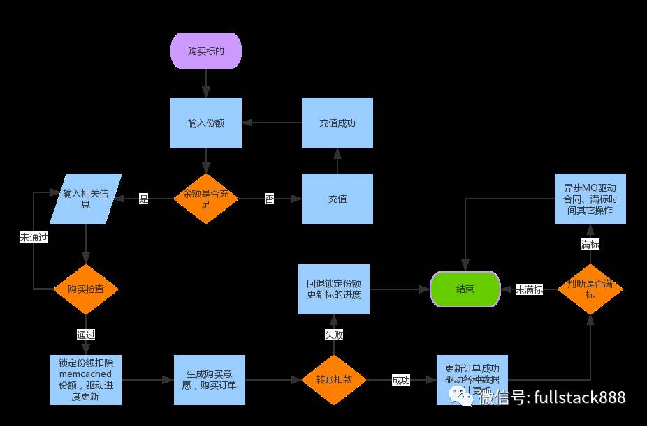 针对这个问题,主要是引入了memcached乐观锁的概念(底层主要是cas、gets两个命令),在发标的时候存入标的总份额,当用户购买的时候首先去锁定用户购买的份额,因为乐观锁的原因,如果同时有两个用户拿到份额的时候保证只有一个最后可以更新成功(锁定份额),(锁定份额)失败直接返回,这样就保证了在入口的时候就直接屏蔽了部分并发的请求。