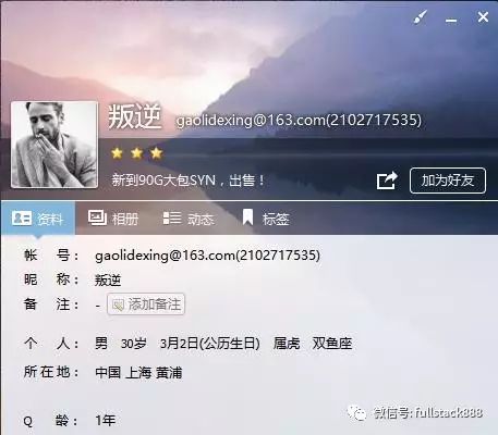 曝光一下当年使用的假QQ号,刚查了下变了个头像和描述,如下: