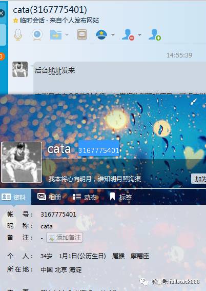 这个家伙潜伏到我们公司的客户群里面,冒充我们的客户代表将头像和资料替换成一样,然后给群里所有的客服让他们发送我们内部的后台地址,想通过这种方式来寻找突破口,当然了这个算是里面的小菜鸟吧。