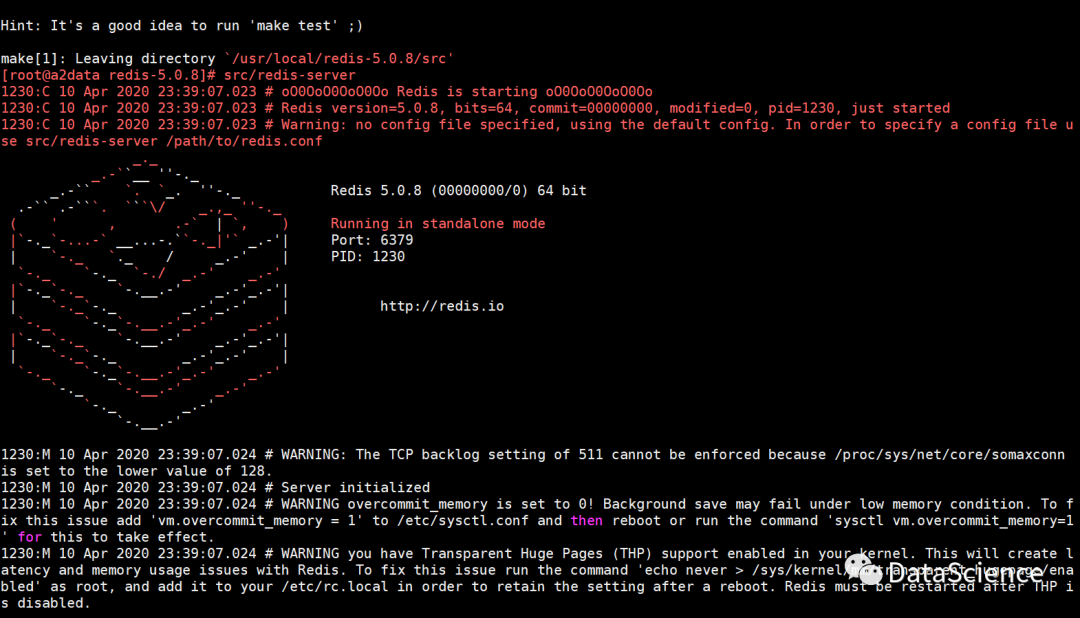vm.overcommit_memory = 1添加到/etc/sysctl.conf中,然后执行sysctl -p生效配置。第三个警告