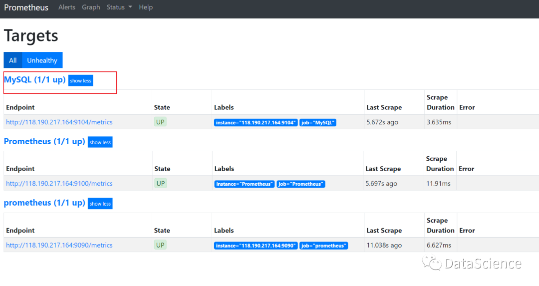重启Prometheus服务就可以看到Mysql的配置